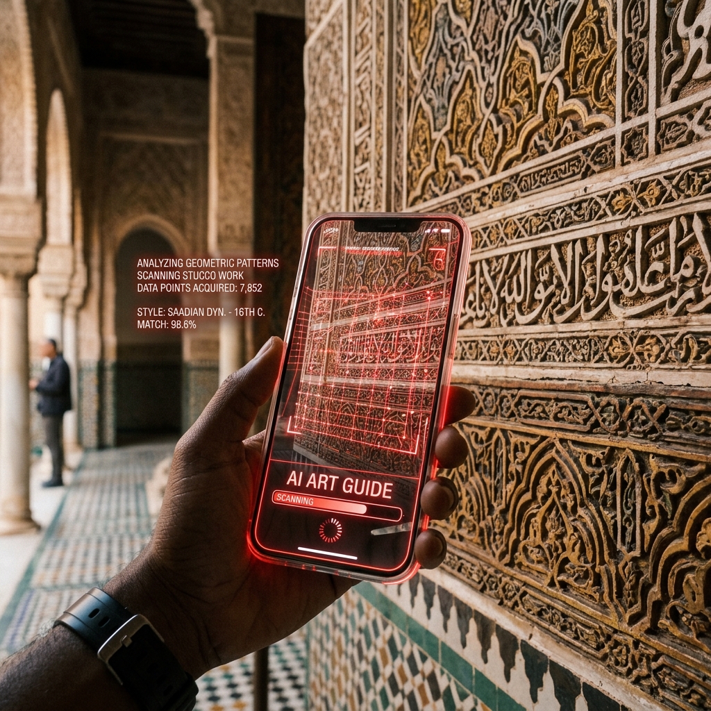 Point your camera at Hassan Tower, Bahia Palace, or 500+ sites. Our AI narrates in Arabic, French, or English.